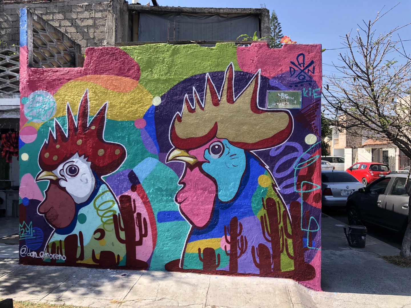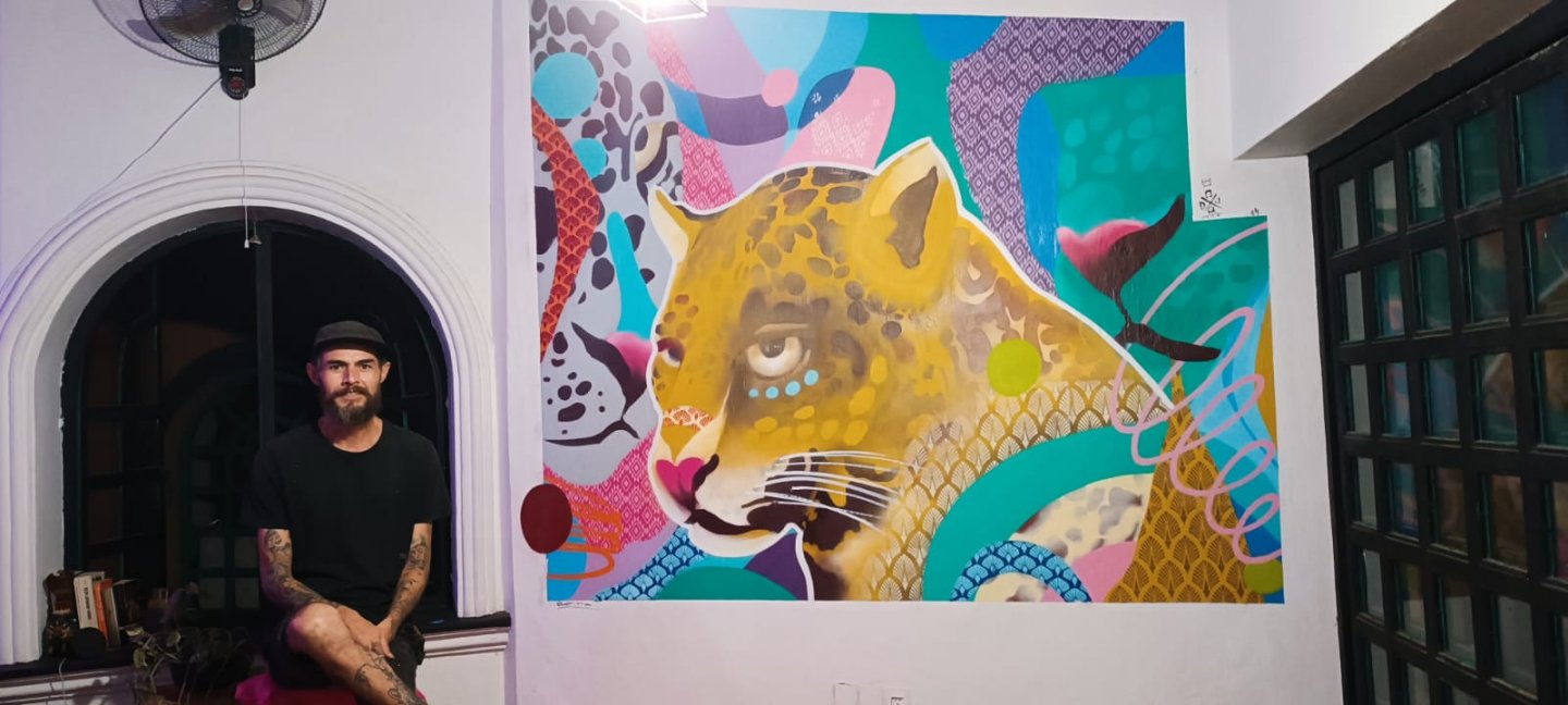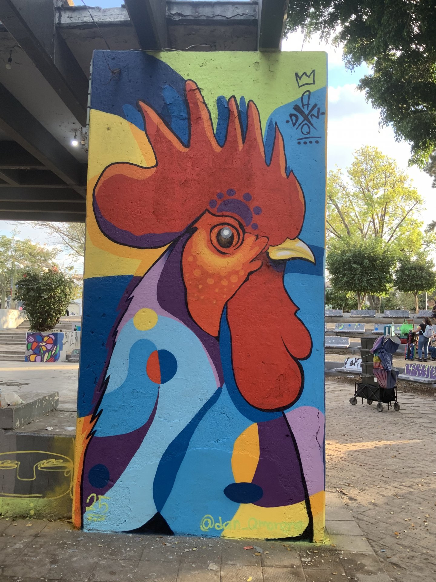 Daniel es oriundo de Guadalajara, Jalisco, México, encontró su pasión por el arte desde una edad temprana. A los 10 años, su familia se trasladó a Charlotte, Carolina del Norte, donde se abrió camino en el mundo del arte urbano y el graffiti. Desde los 11 años, sus padres lo apoyaron en sus creaciones, y su visión del mundo llenó su mente de colores y formas abstractas. Su estilo distintivo, suelto y sin miedo al color, le ha permitido plasmar sus creaciones en una variedad de medios, incluyendo murales, lienzos, muebles, piel (tattoo) y objetos. A pesar de su larga trayectoria en el mundo de la pintura, fue hasta casi los 30 años que decidió dedicar por completo sus días a expresar su arte y llenar su entorno de belleza y color. Inspirado por sus experiencias de vida en dos culturas diferentes y por su amor por el arte callejero, Dan ha desarrollado un estilo único que fusiona elementos del graffiti con la tradición artística mexicana. Sus obras destacan por su energía vibrante, su expresividad y su capacidad para evocar emociones en el espectador
